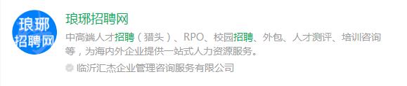 瑯琊招聘網(wǎng)是臨沂人才工作集團人力資源服務(wù)有限公司下屬公司臨沂匯杰企業(yè)管理咨詢服務(wù)有限公司負責(zé)各大企業(yè)招聘,人才輸送定制的微信小程序。